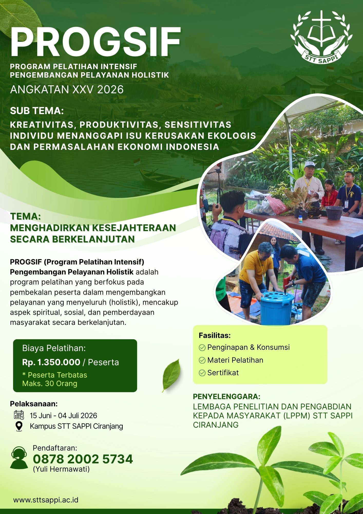 April 28, 2026PROGSIF Angkatan XXV 2026 Resmi Dibuka! 🌱 Sekolah Tinggi Teologi SAPPI Ciranjang kembali menghadirkan PROGSIF (Program Pelatihan Intensif Pengembangan Pelayanan Holistik) sebagai wadah pembekalan bagi individu yang rindu melayani secara utuh dan berdampak. Dengan mengusung tema “Menghadirkan Kesejahteraan Secara Berkelanjutan”, program ini dirancang untuk membentuk peserta yang kreatif, produktif, dan peka terhadap berbagai isu nyata, […]